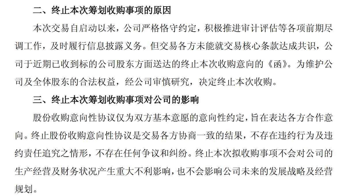 不过,目前来看,华立股份上述计划落空。在终止公告中,华立股份称,交易各方未能就交易核心条款达成共识,公司于近期已收到标的公司股东方面送达的终止本次收购意向的《函》。